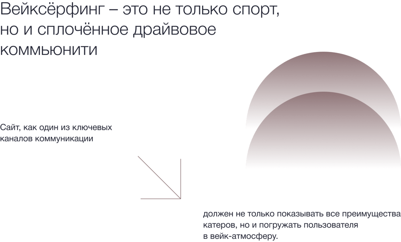 Создавая дизайн, мы опирались на ключевое желание клиента выделиться на фоне конкурентов и тем самым собрать вокруг себя обширное комьюнити, объединить вейкбордистов, вейксёрферов и всех заинтересованных в этой теме людей. Решая задачу, мы хотели показать, что катер — это не просто вещь. Это эмоции, воспоминания, общение и драйв. Сайт наполнили lifestyle фотографиями создающими нужную атмосферу, которая мотивирует людей вступить в сообщество.