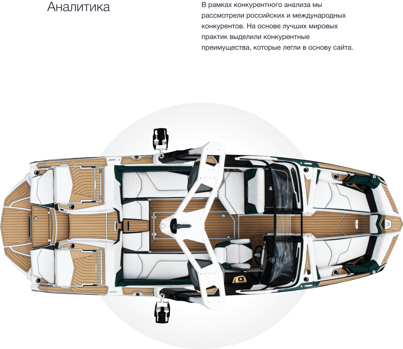 На практике мы видим, что самые интересные и крутые проекты создаются при симбиозе команд профессионалов. Наш клиент действительно погружен в свое дело, всегда приятно работать с людьми, у которых горят глаза. Во время разработки проекта мы регулярно проводили сессии брифингов с клиентом, и это было всегда интересно и продуктивно. Теперь мы больше знаем о маринах, верфях, строении и преимуществах различных катеров. Для клиента было важно передать мысль о том, что покупая катер, человек покупает не просто вещь, а причастность к сообществу ярких профессионалов, спортсменов, предпринимателей.