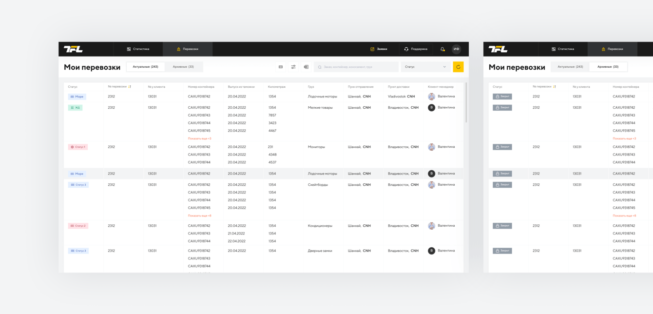 Клиенты TFL получали всю информацию о своих перевозках и контейнерах через менеджеров: