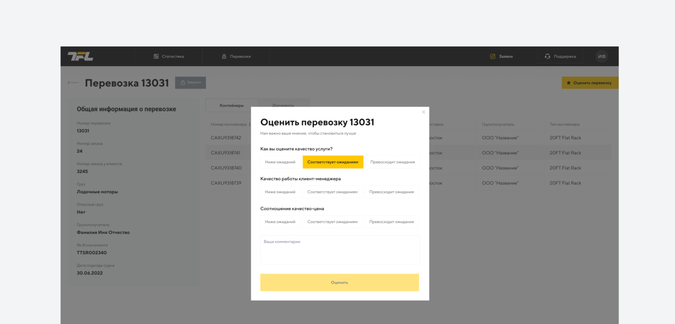 Реализовали форму обратной связи: по каждой завершенной перевозке пользователь может дать обратную связь напрямую руководству заказчика.