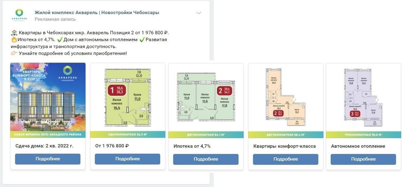 Мы решили попробовать сделать общее объявление по трем микрорайонам – Радужный, Олимп, Акварель, но не брали премиум микрорайон «Премьер». И вести на предварительно собранный квиз-опрос.