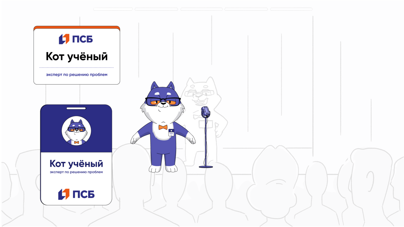 Сохранить фирменный стиль ПСБ и использовать уже существующего персонажа – Кота, который ранее появился в корпоративных стикерах.