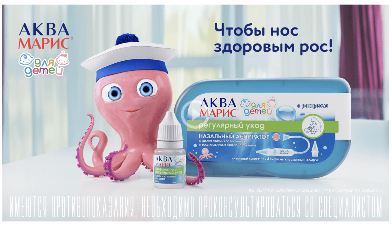 Создать анимацию для пэкшота в рекламном ролике Аква Марис® о каплях для детей и аспираторе.