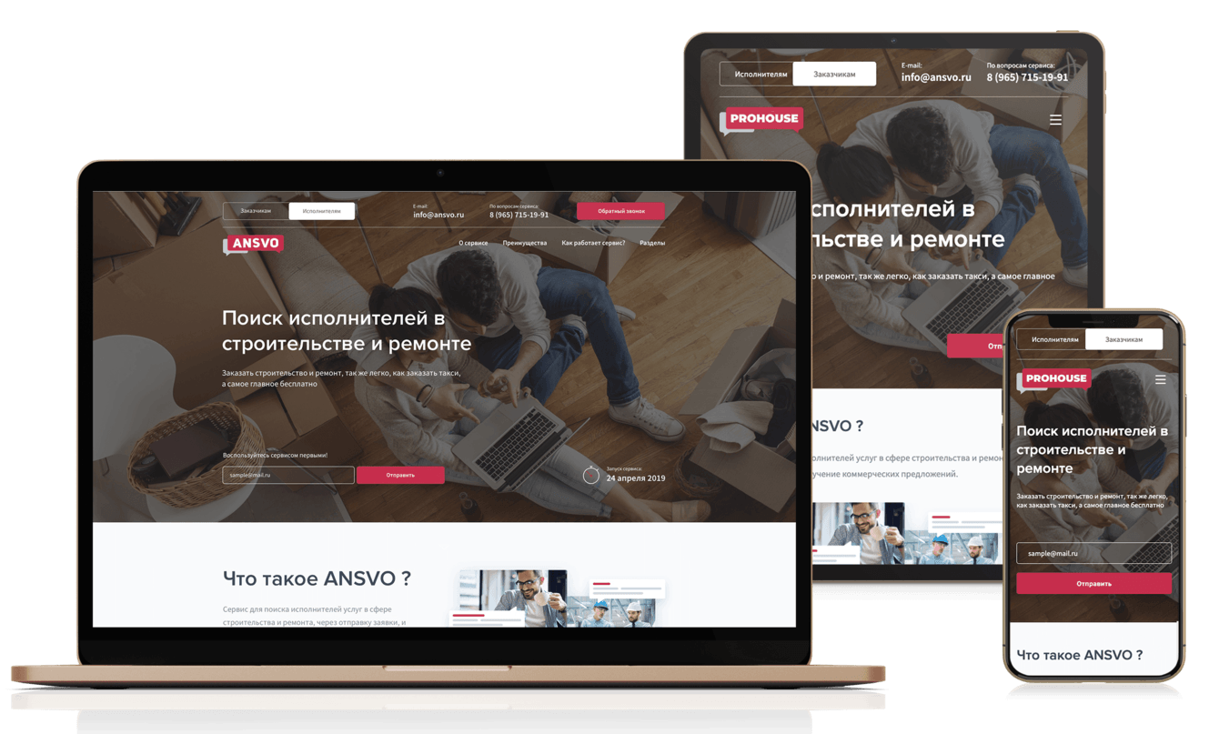 Разработали посадочные страницы под роли пользователей сервиса: исполнитель и заказчик. Провели рекламную компанию и получили заявки.