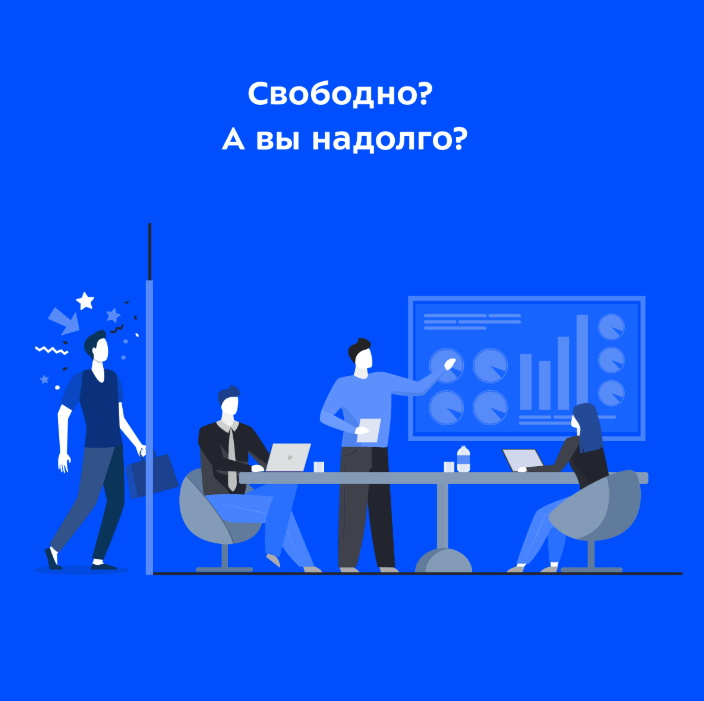 Вообще компании, у которых вообще есть проблемы с переговорками — это не маленький бизнес. И чтобы внедрить у себя даже халявное решение, надо пройти целую цепочку согласований, назначить ответственного, выделить ресурсы, и главное — не уволиться в этом процессе. То есть такие штуки не покупают импульсно, просто потому что крутой креатив или классная структура лендоса.