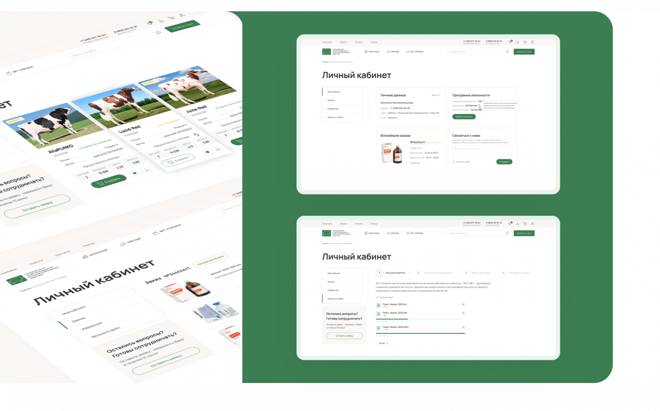 В личном кабинете теперь можно подать заявку на племенной материал животного в пару кликов и сохранять понравившихся животных в «в стойло» (избранное). Также удобно отслеживать свой заказ из ветаптеки и связаться с менеджером по любым вопросам.