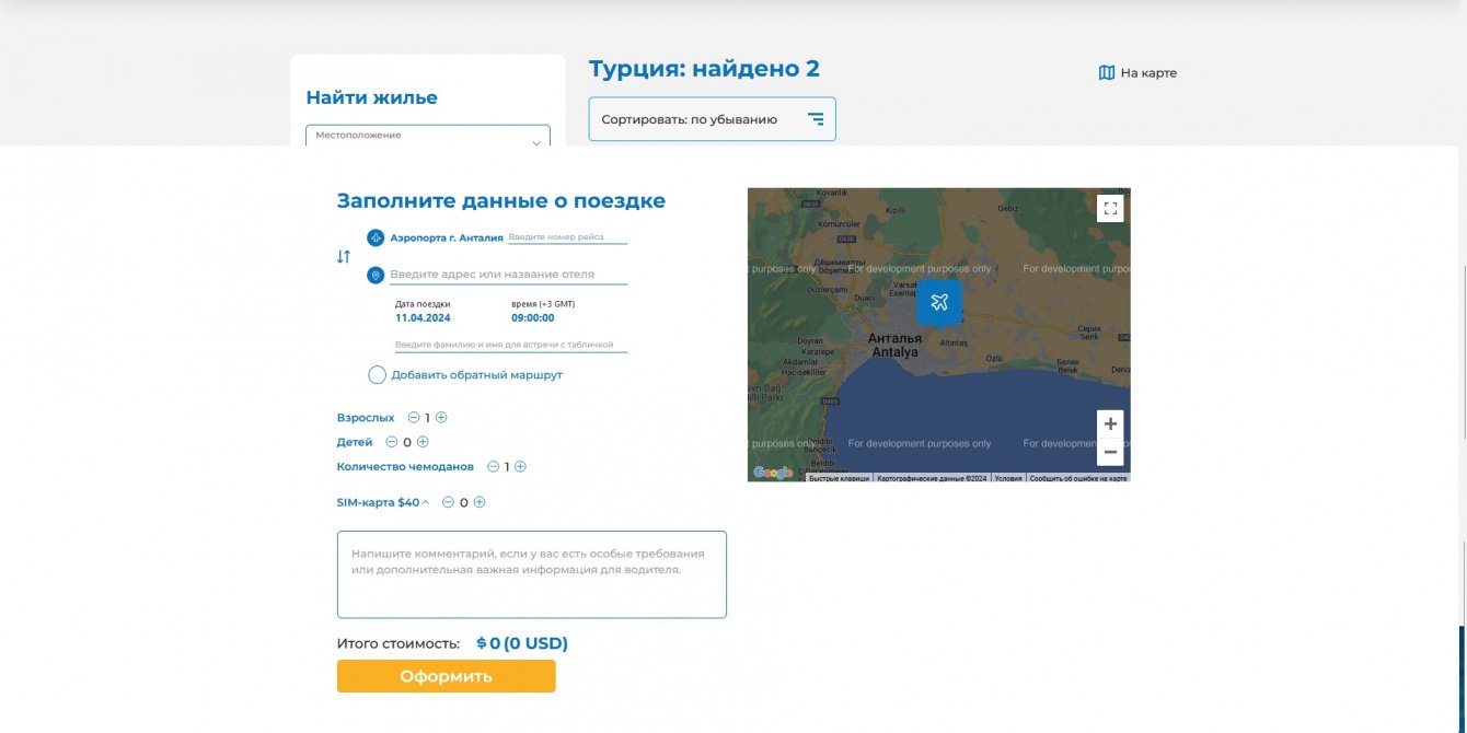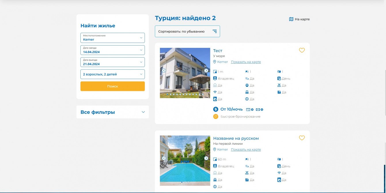 В рамках проекта был разработан сайт по бронированию жилья в городах Турции.