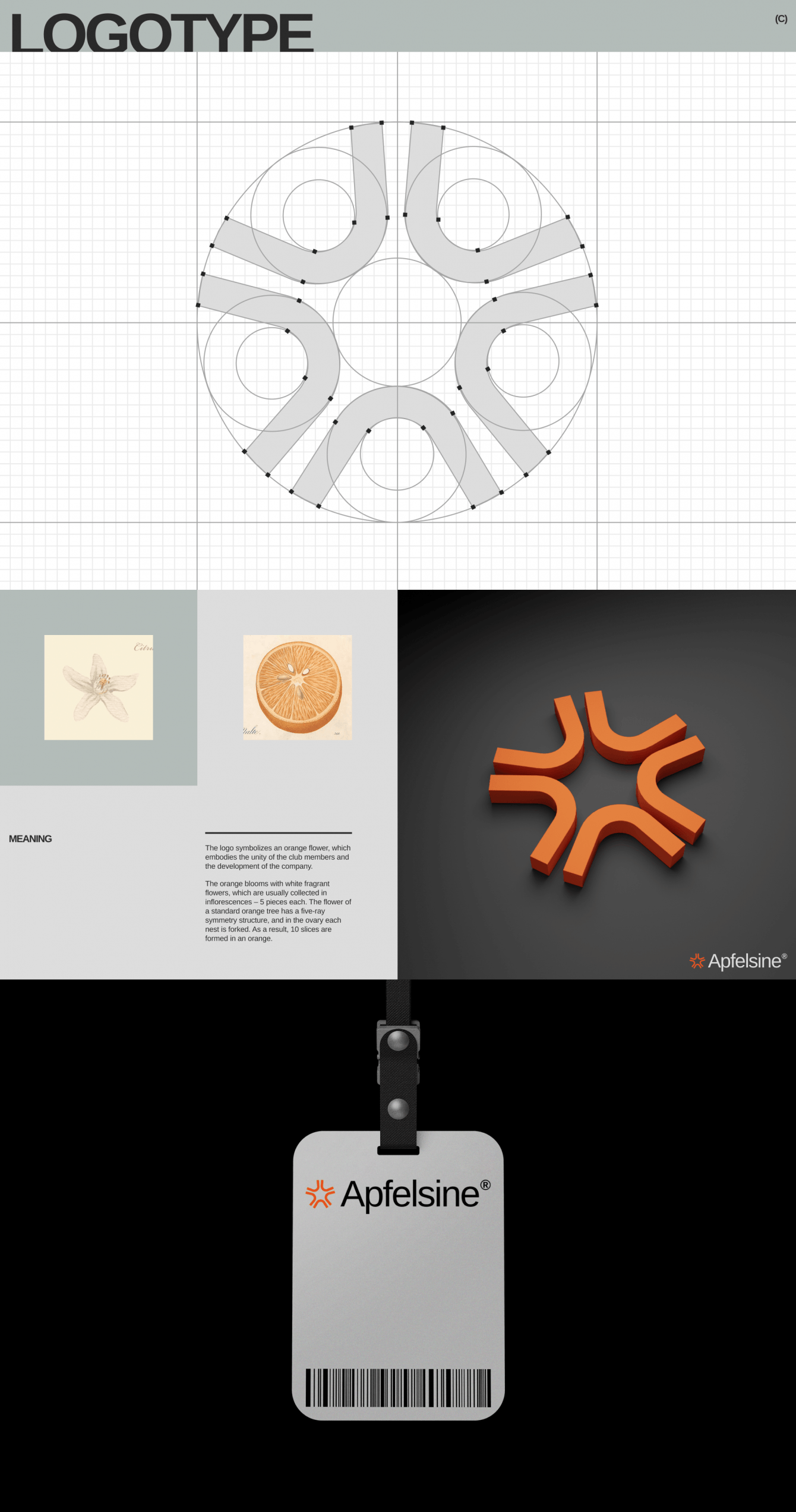 Логотип символизирует цветок апельсина, который олицетворяет единство участников клуба и развитие компании.