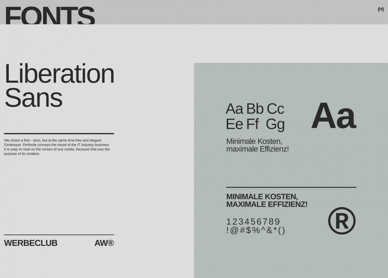 Выбрали шрифт – строгий, но в то же время свободный и элегантный Гротеск. Отлично передает настроение бизнеса IT-индустрии. Легко читается на экране любых носителей, поскольку именно это и было целью его создания.