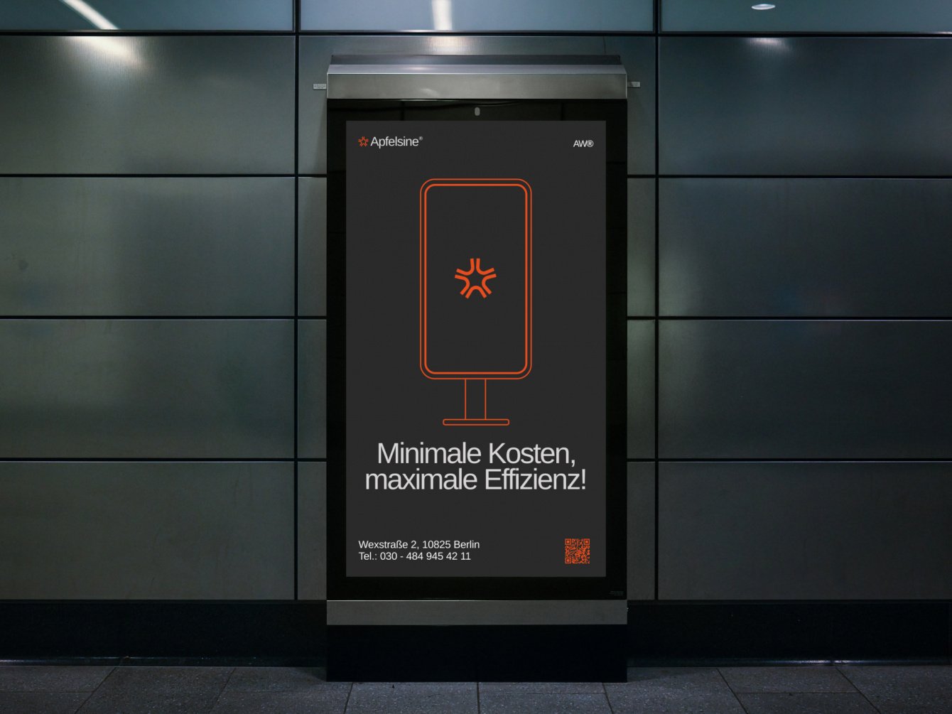 Компания Апельсин – стартап. Решили создать возможность транслировать рекламу для малого бизнеса на билбордах.