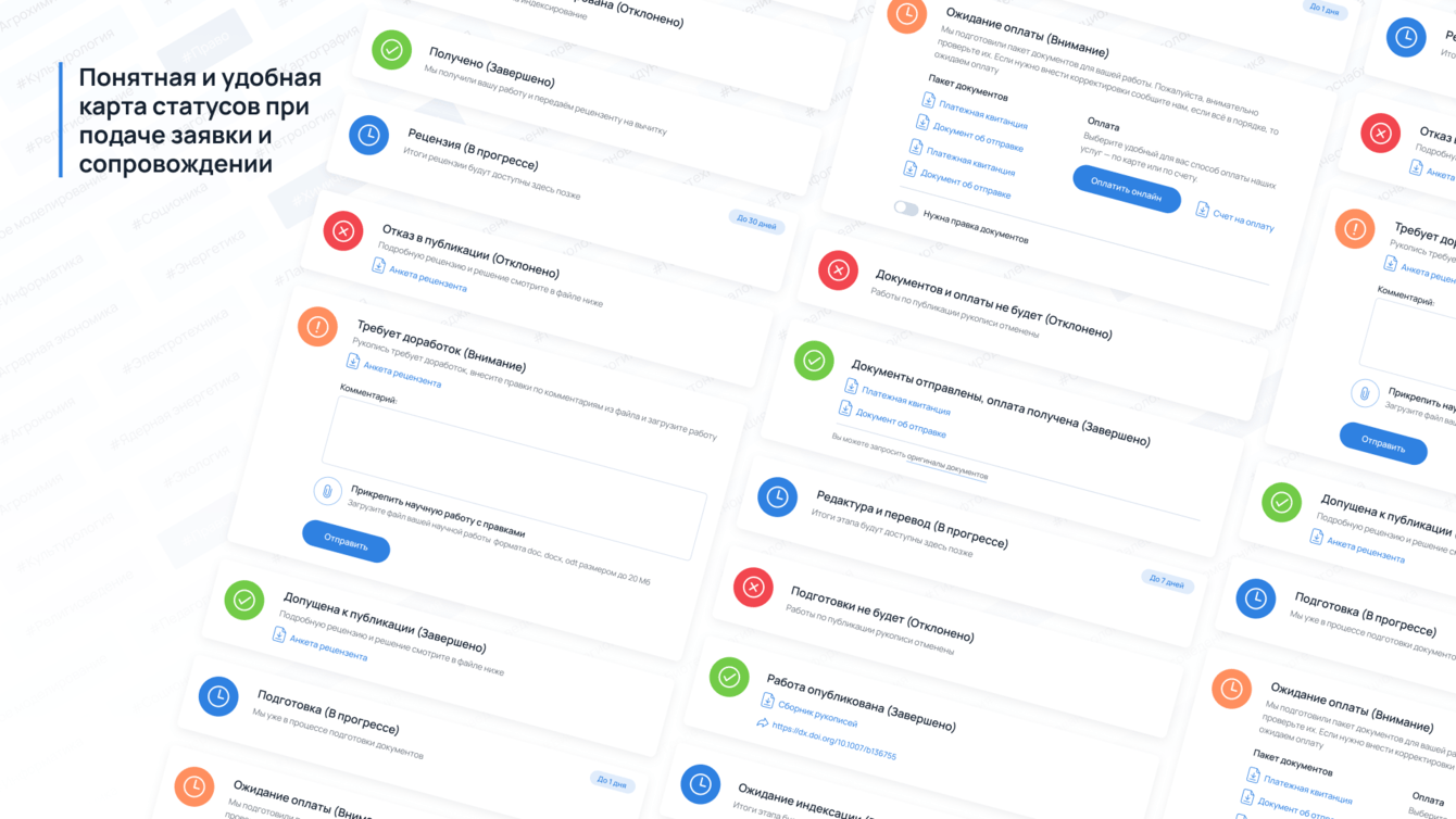 2. Создали личный кабинет для учёных, где можно подавать заявки на публикацию и отслеживать этапы работы над ними – и всё это онлайн.