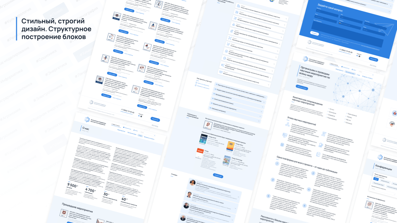 1. Разработали для заказчика сайт с удобной структурой, лаконичным и функциональным дизайном. Здесь авторы могут изучить и выбрать подходящую научную конференцию или сборник.