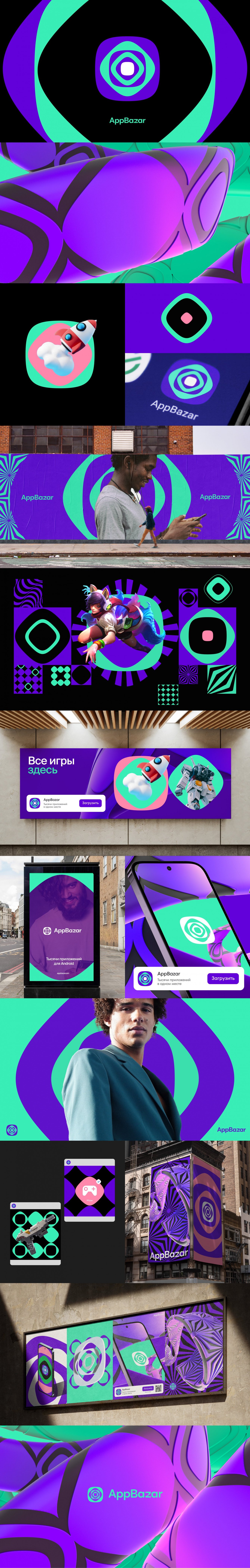 AppBazar — новый магазин приложений для android-устройств, релиз которого состоялся в 2022 году. Клиент хотел пополнить нишу мобильных сторов на фоне ухода разных сервисов из России и предоставить пользователям качественный продукт. Чтобы сделать релиз максимально эффектным, клиент обратился к нам за разработкой яркой айдентики.