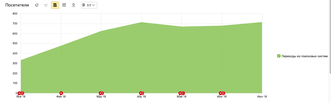 Результат порадовал всех. Мы не только удвоили трафик, мы теперь ежемесячно растем в “Яндексе”: