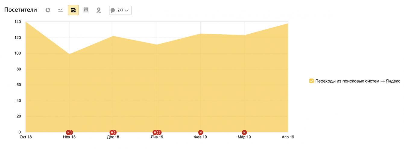 В общем, поработали на славу. И ребята от нас ушли. Мы начали сотрудничать в декабре 2017-го, проработали до начала февраля. В какой-то степени нам помешали новогодние праздники (банально был упадок спроса), в какой-то задержавшиеся результаты. Это текстовая оптимизация дает первый результат за 2-3 недели. А исправление технических косяков порой приносит профит только через 1-2 месяца.