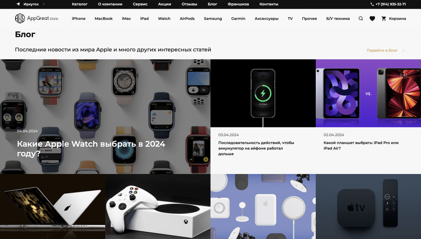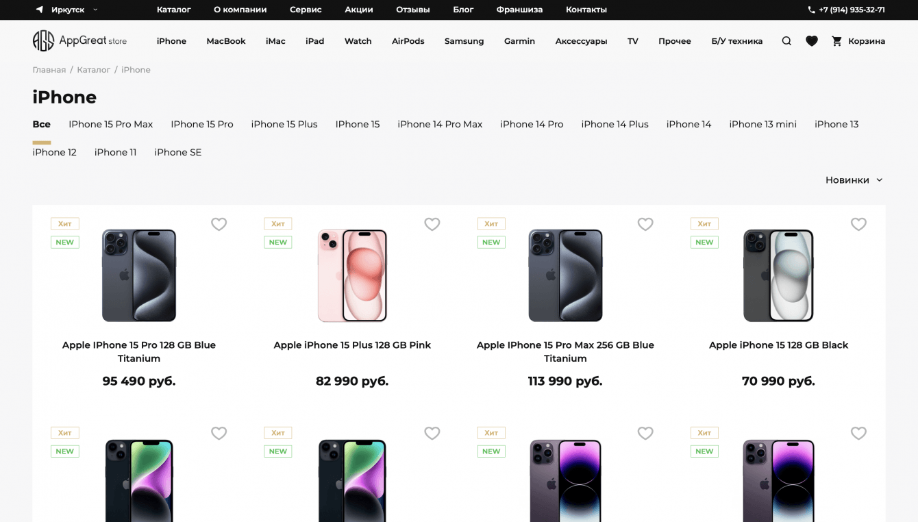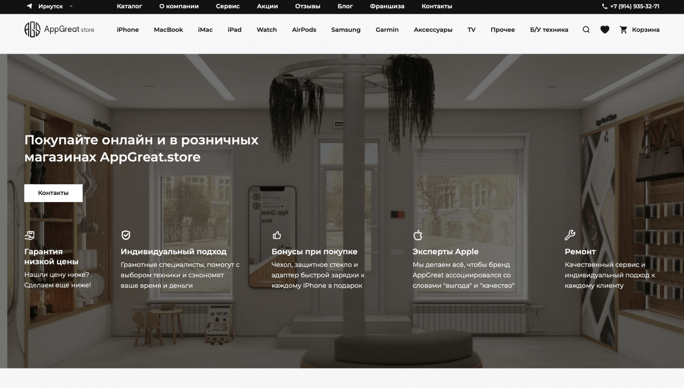 Мы стали участниками проекта для нашего клиента – AppGreatStore, одной из крупных компаний, занимающихся продажей и ремонтом техники Apple в России. В тесном сотрудничестве с инхаус-командой мы занимались разработкой интернет-магазина. Нам доверили дизайн, backend- и frontend-разработку, управление процессами и обеспечение качества.
