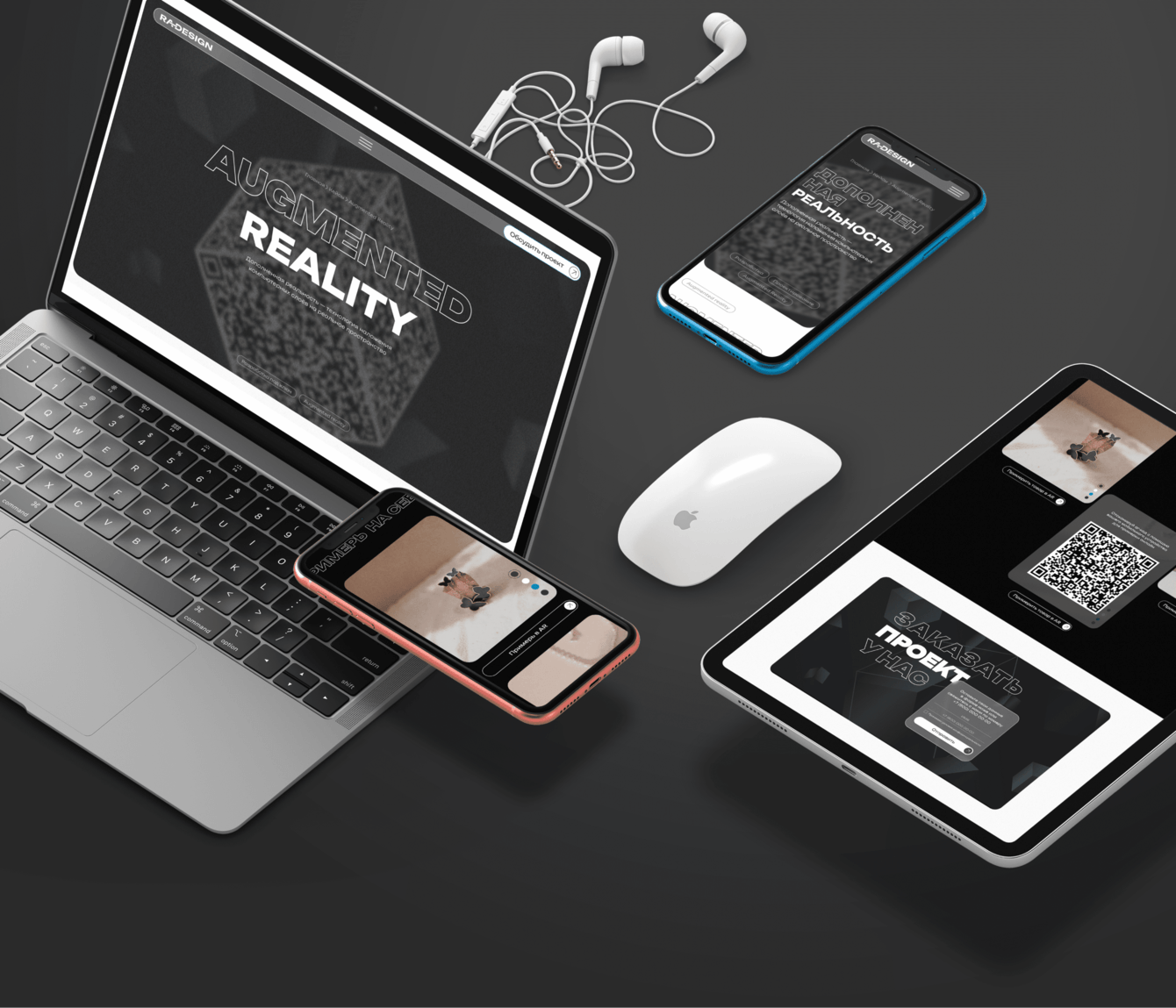 Так как не все наши клиенты знают о данной технологии, была поставлена задача разработать landing page с полным описанием дополненной реальности (AR), как она работает и чем может помочь бизнесу. Основной акцент должен быть сделан на самом механизме, чтобы в итоге у пользователя было полное представление о работе AR.
