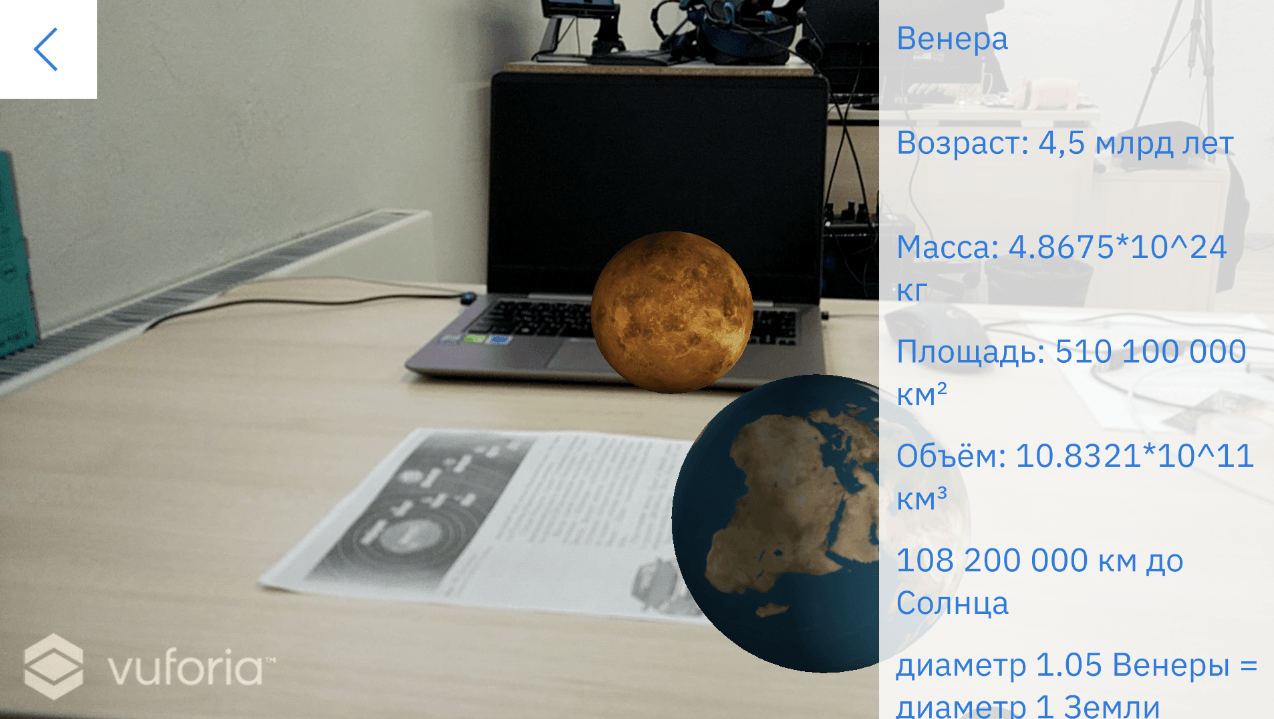 Модель солнечной системы в приложении с AR-функционалом, на движке Unity и платформы Vuforia, для мобильных устройств с IOS и Android.
