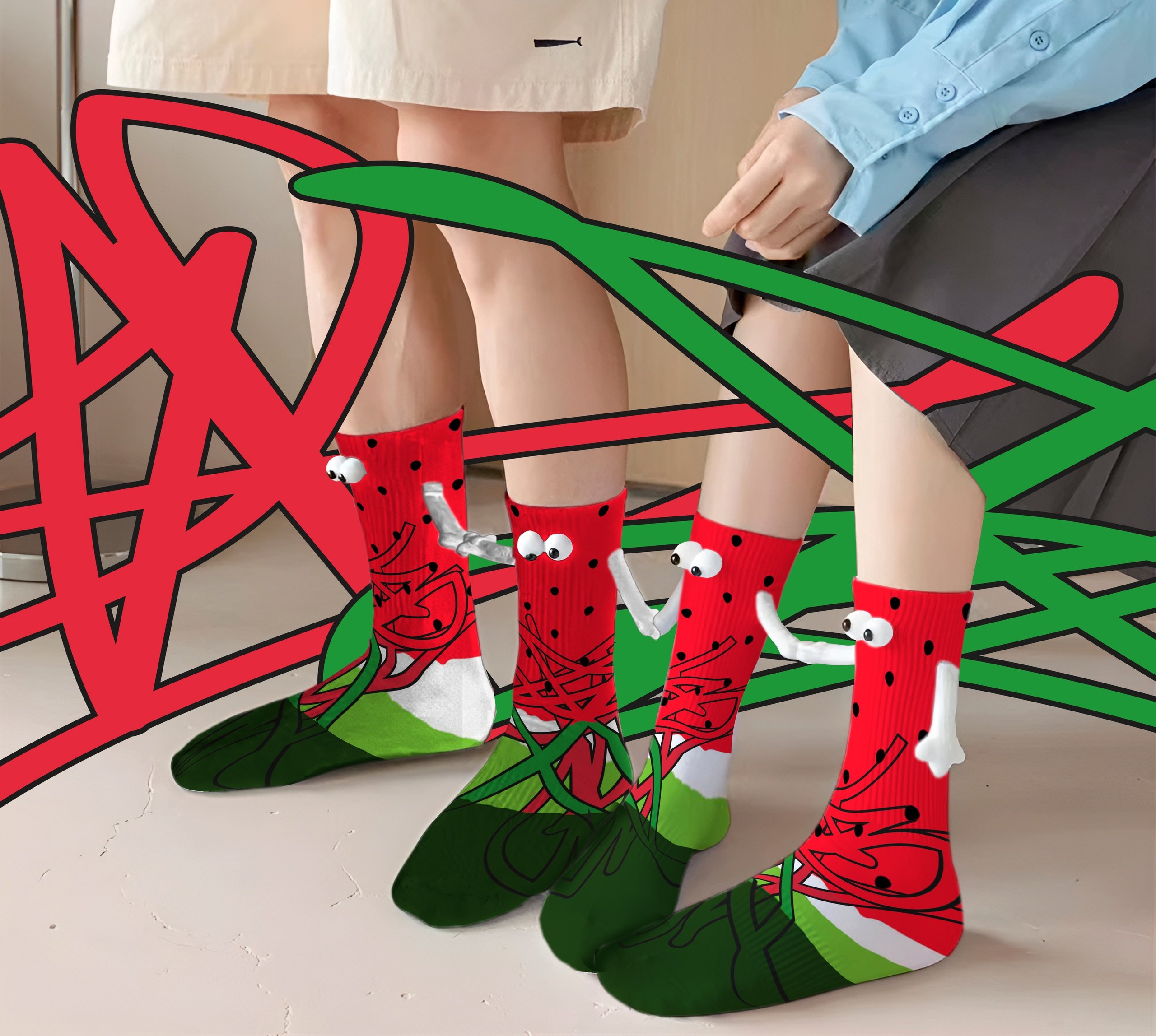 В комплект мерча также входят текстильные носовые платки. Люди, которые находятся в отношениях с арбузером, часто плачут, а значит им нужно чем-то вытирать слезы. Парные носки сделаны по мотивам внешнего вида героя-арбузера, поэтому имеют объемные глазки и ручки с магнитами, которые соединяются при нахождении ног на близком расстоянии. Это подчеркивает связь арбузера и его жертвы, создает впечатление, что они буквально «связаны по ногам» и никуда друг от друга не уйдут.