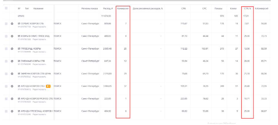 результат: 28 заявок, 9 заказов обратного звонка, 2 клика по номеру и 14 кликов по email