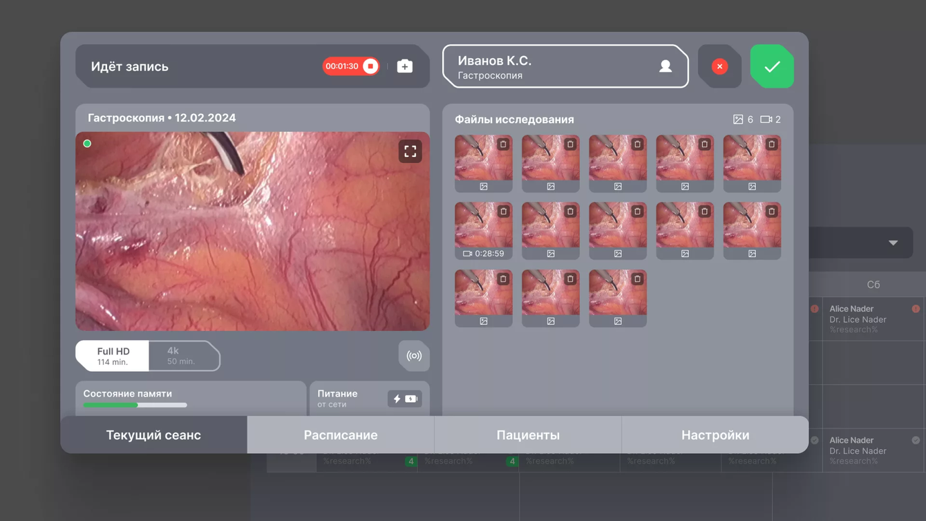 Видеозапись эндоскопических исследований в реальном времени, что позволяет врачам фиксировать важные моменты для последующего анализа.