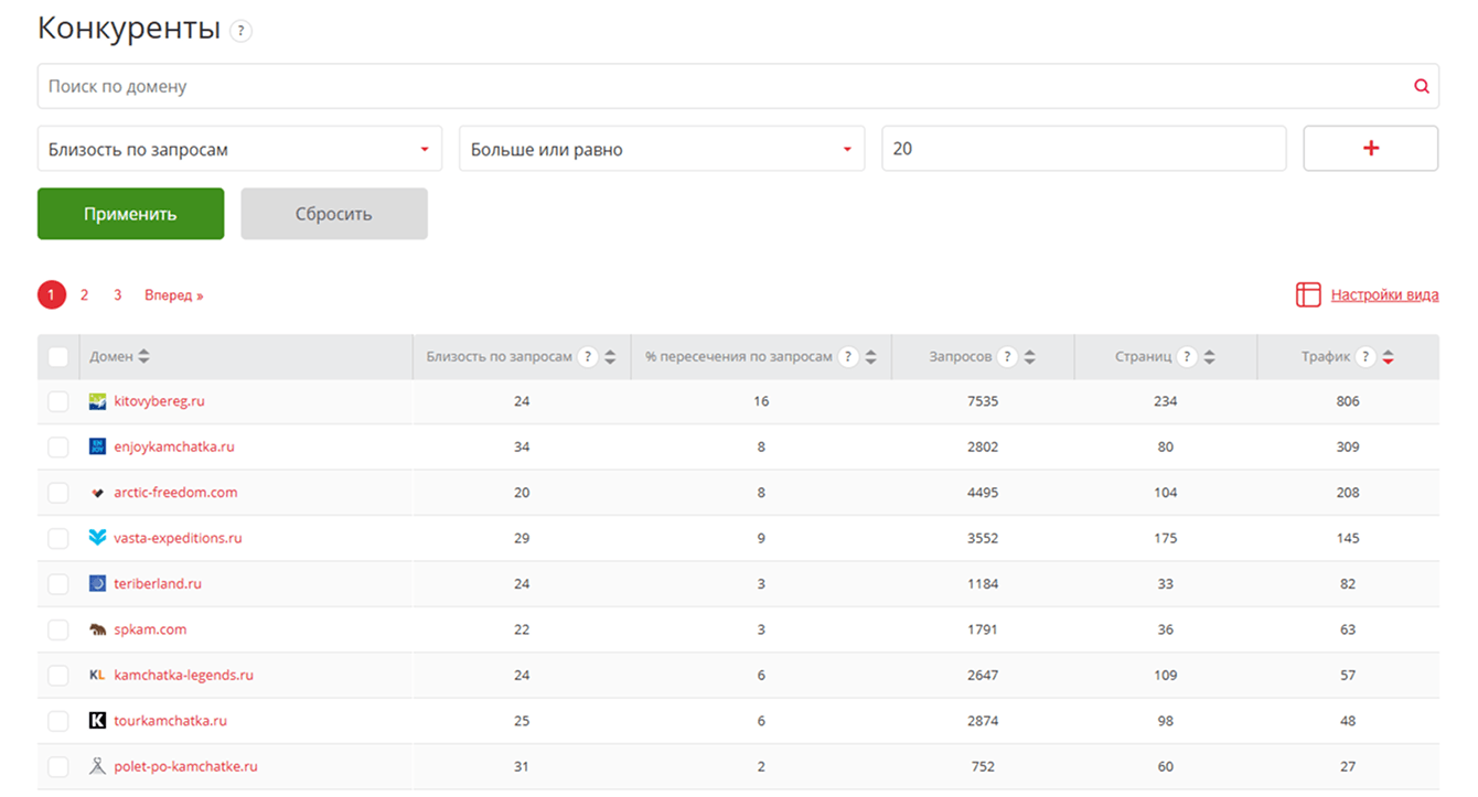 Подобрали прямых конкурентов, чей трафик значительно превышал показатели нашего сайта.