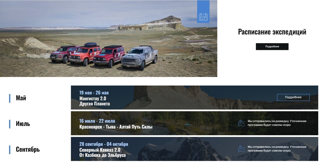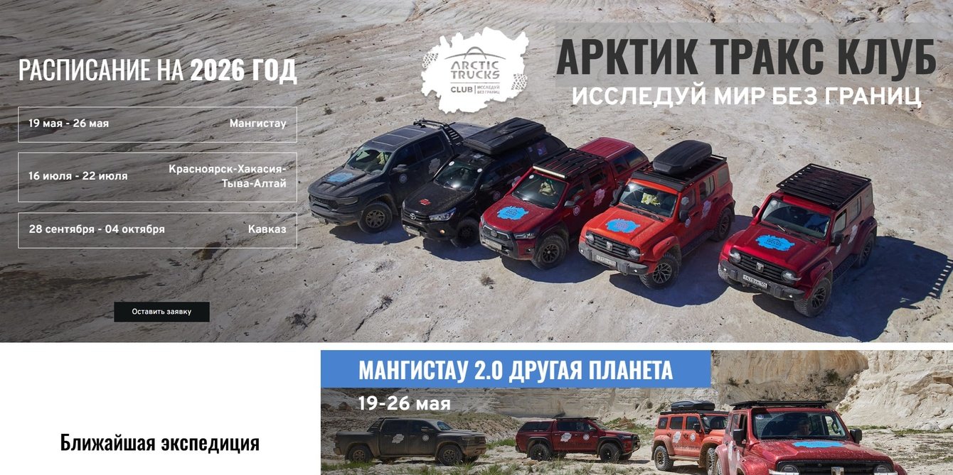 Разработать привлекательный, информативный лендинг для сообщества владельцев техники Arctic Trucks — платформы для обмена опытом, анонсов экспедиций и формирования бренда клуба в России.