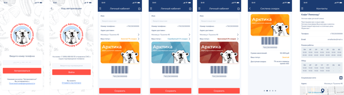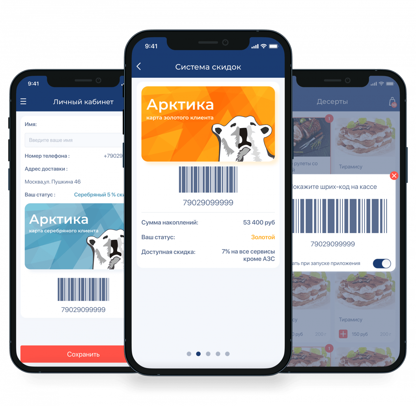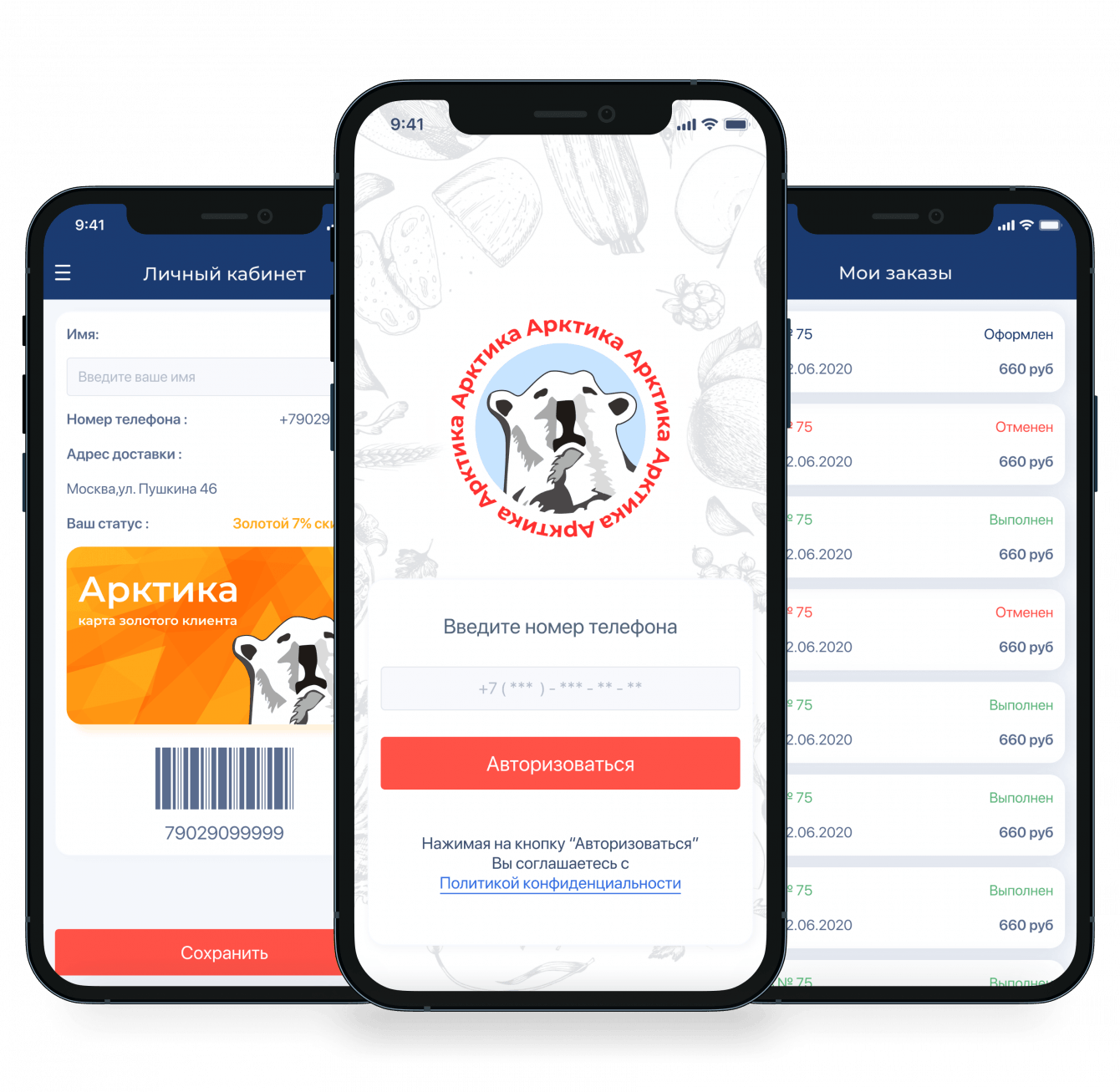 Сервисы обслуживания торговой группы "Арктика": разработка мобильного приложения Арктика (iOS / Android), в котором: