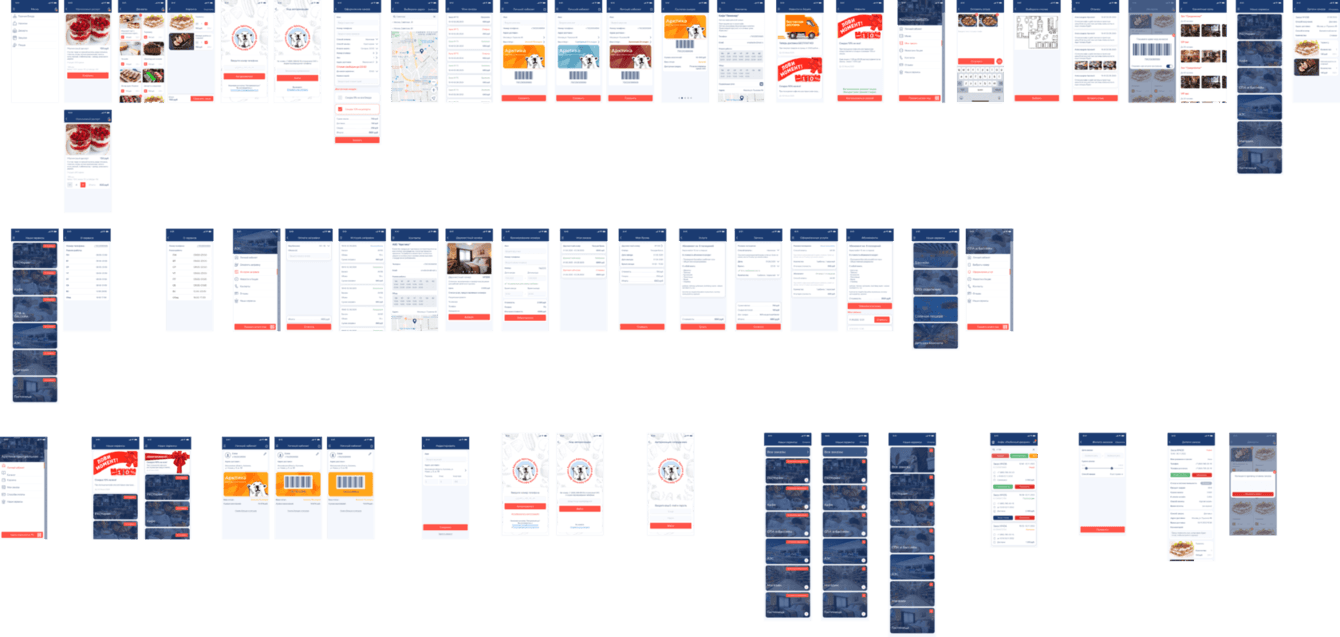 После подписания договора и начала сотрудничества мы спроектировали, отрисовали и согласовали с клиентом макет каждого экрана приложения.