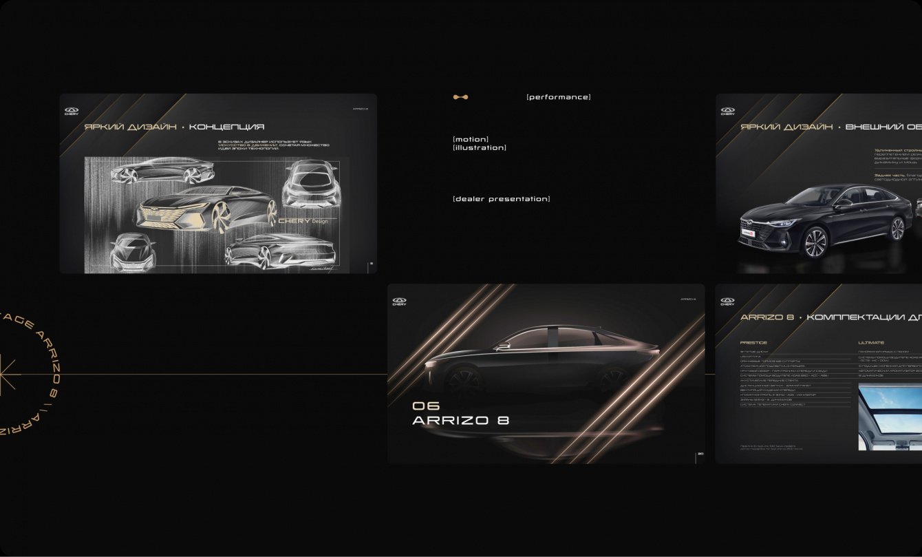 Мы разрабатывали визуальную концепцию мероприятия запуска новой модели Cherry Arizo, начиная с определения ключевых элементов стиля. Основное внимание было уделено созданию лаконичного и яркого образа, который подчеркивал бы элегантность нового автомобиля.