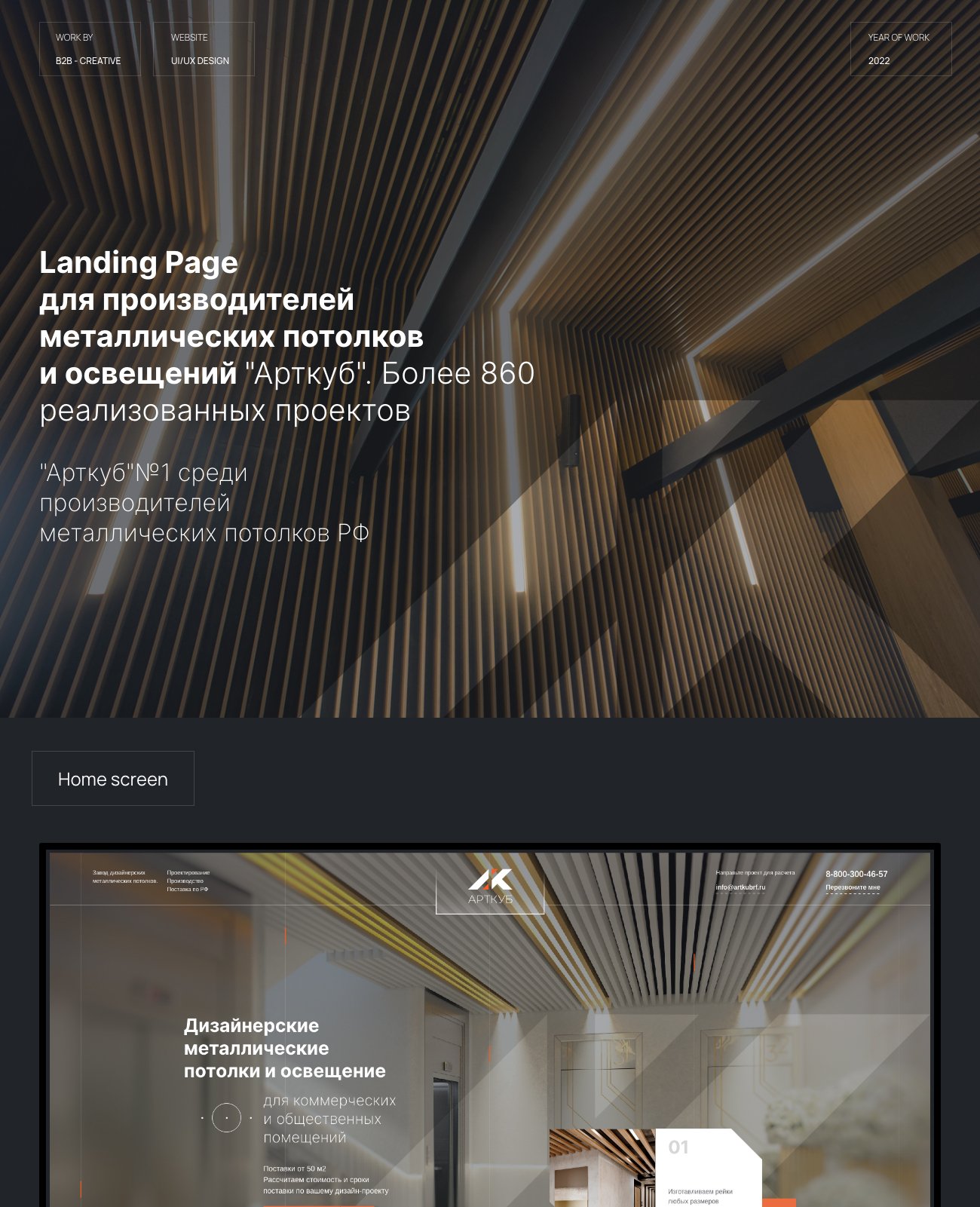 Клиент: Производитель металлических потолков и освещений "Арткуб".