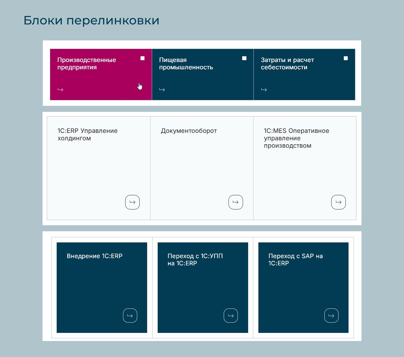 На этапе составления структуры каталога услуг, продуктов и решений для автоматизации нужно было учитывать сложившуюся в стране необходимость импортозамещения. Так, наш заказчик сменил фокус с внедрения ушедшего SAP на внедрение 1С и переход c SAP на 1С. Мы учли это при формировании разделов и подразделов структуры.