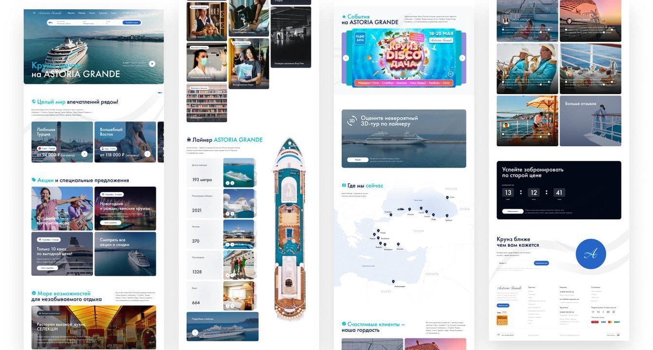 1. Рассказать об особенностях круизного отдыха с Astoria Grande так, чтобы поехать в морское путешествие хотелось уже с первой пары скроллов на главной странице.