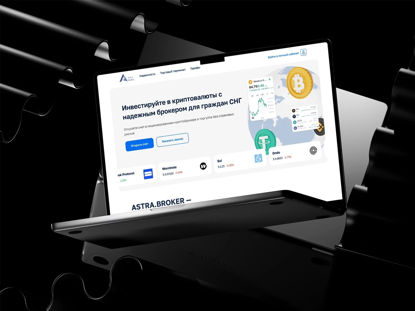 Интерфейс криптовалютной платформы ASTRA.BROKER сфокусирован на простоте, безопасности и удобстве. Проект предназначен для пользователей из СНГ и включает ключевые сценарии: авторизация, управление счетами и торговля криптовалютой.
