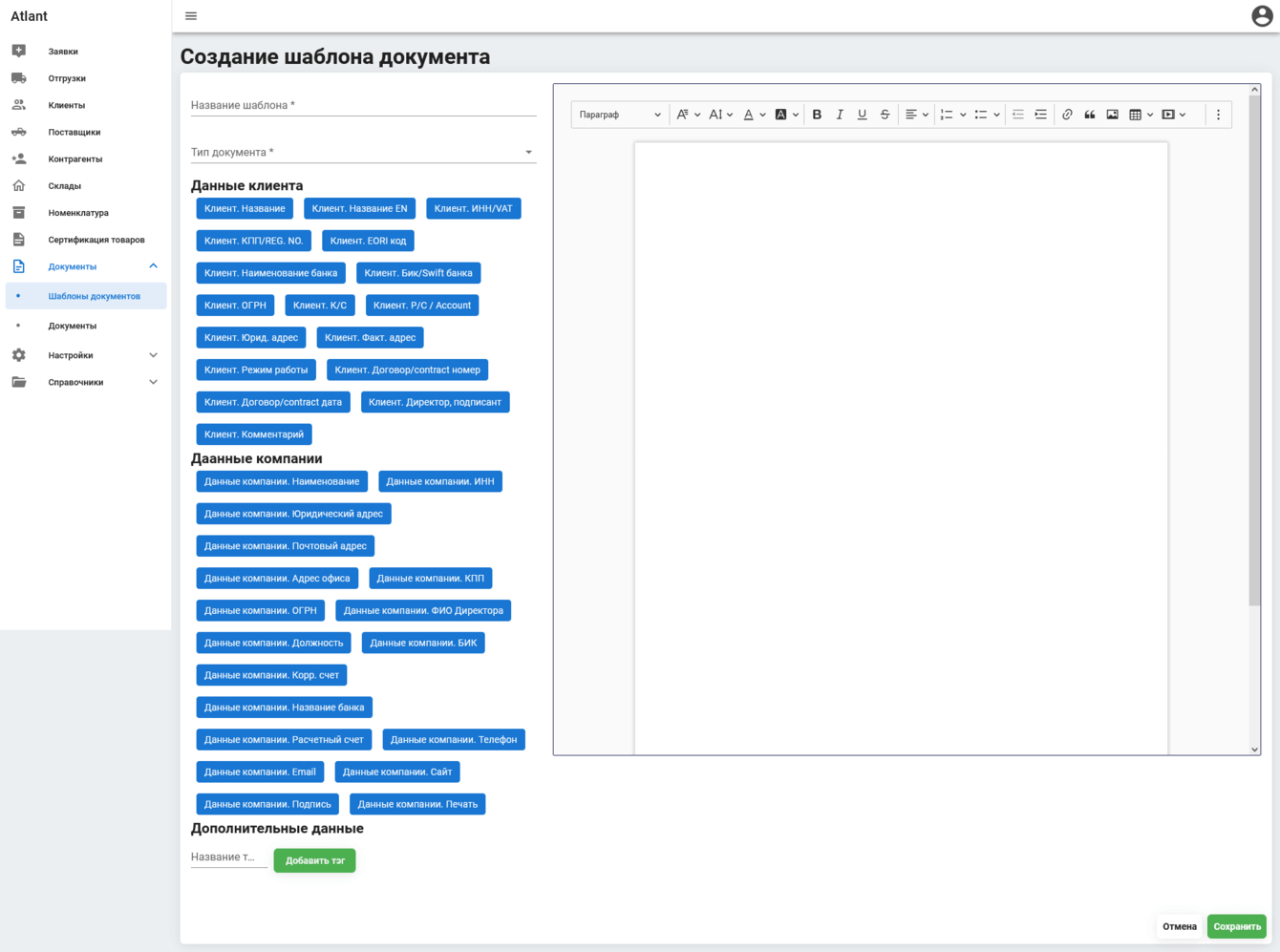CRM позволяет быстро вносить данные по поставщикам, отгрузкам, заявкам и т. д. Позиции добавляются в систему как единично, так и через загрузку Excel-файла. Информацию можно экспортировать из системы обратно в Excel.
