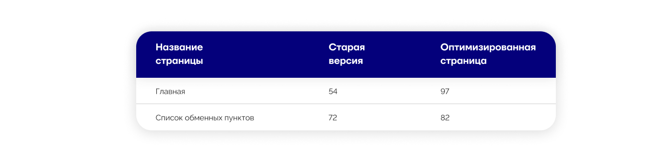 Разделение мобильной и десктопной версий сайта и оптимизация запросов помогли решить проблему низкой скорости работы проекта. Средняя производительность сайта на ПК по показателям Google PageSpeed выросла на 26 пунктов: