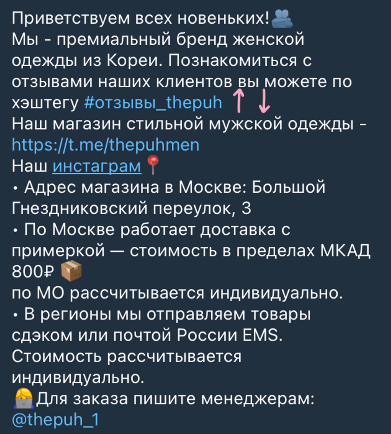 В тематических телеграм-каналах в большинстве своём неосознанная и не платежеспособная аудитория. Тут нужно понимать разницу между теми, кто ХОЧЕТ купить одежду бренда и теми кто МОЖЕТ купить одежду в T H E . P U H.