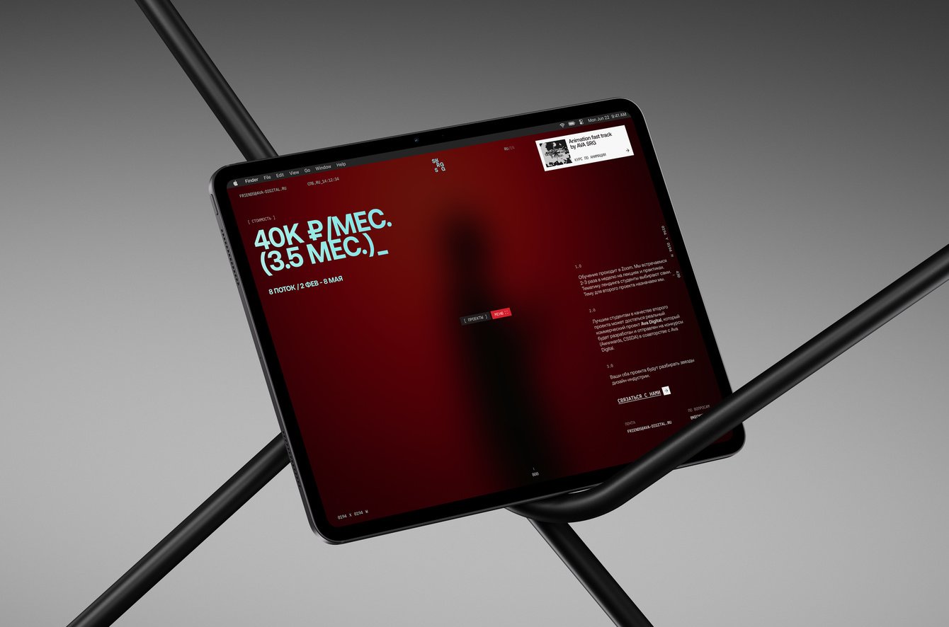 В дизайне мы сочетали смелость и строгость. Визуальное единство поддерживает интерактивная рука и удобное меню на каждом экране. В самый центр вынесли раздел «проекты». Так мы показываем, чем гордимся больше всего — своими студентами и их работами.