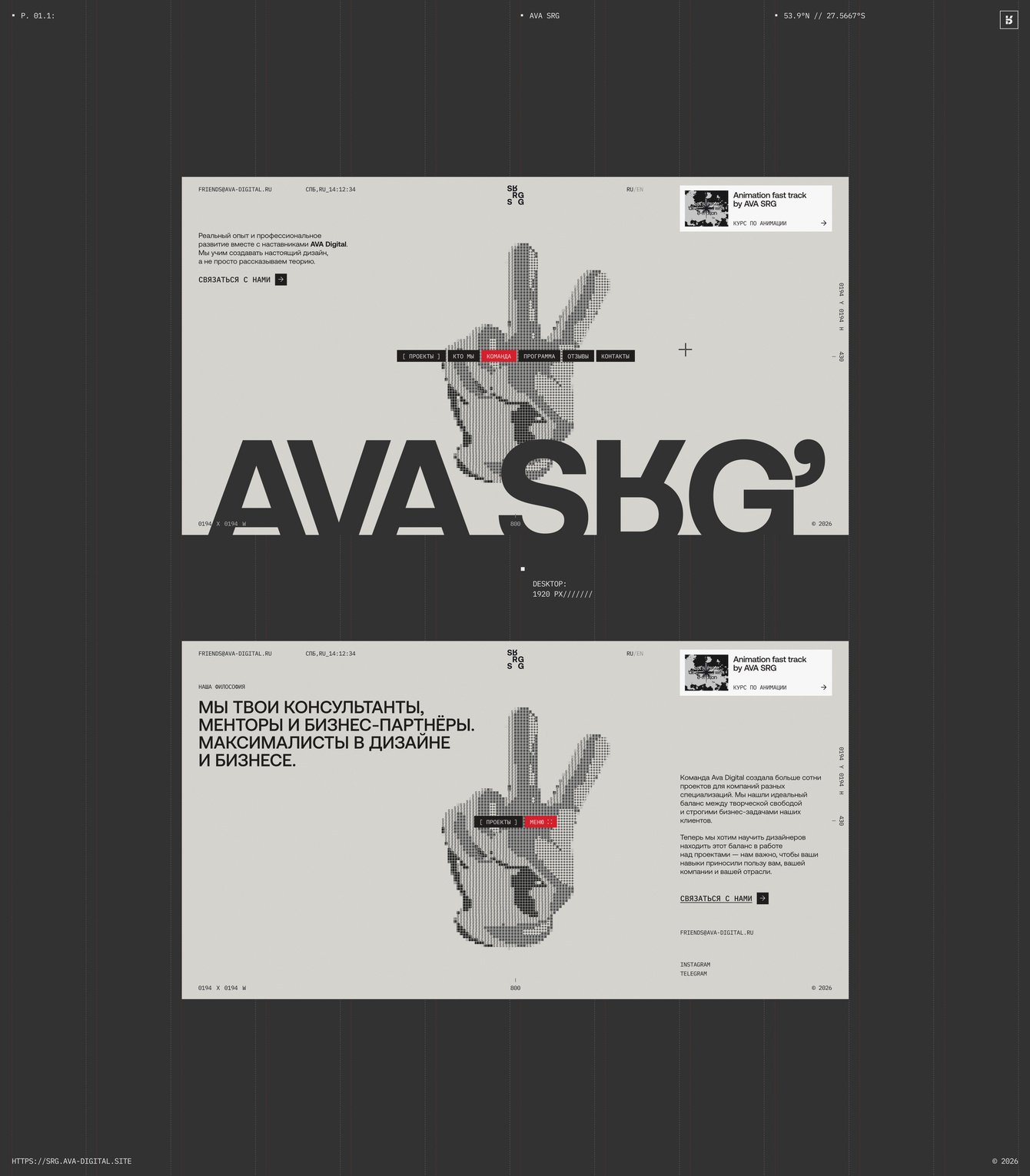 Самым трудным было найти баланс между строгостью и бунтарством: сделать сайт информативным, но не скучным. Сохранив свой стиль, мы показали будущим студентам, каково это — быть частью AVA SRG.