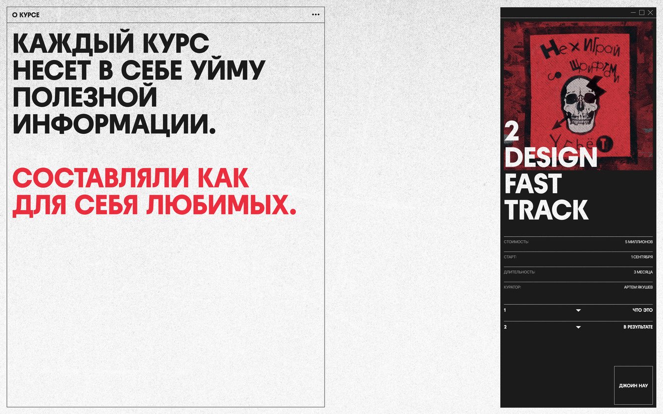 Детальные описания курсов имеют вид модальных окон операционной системе - сложно, но зато как круто!