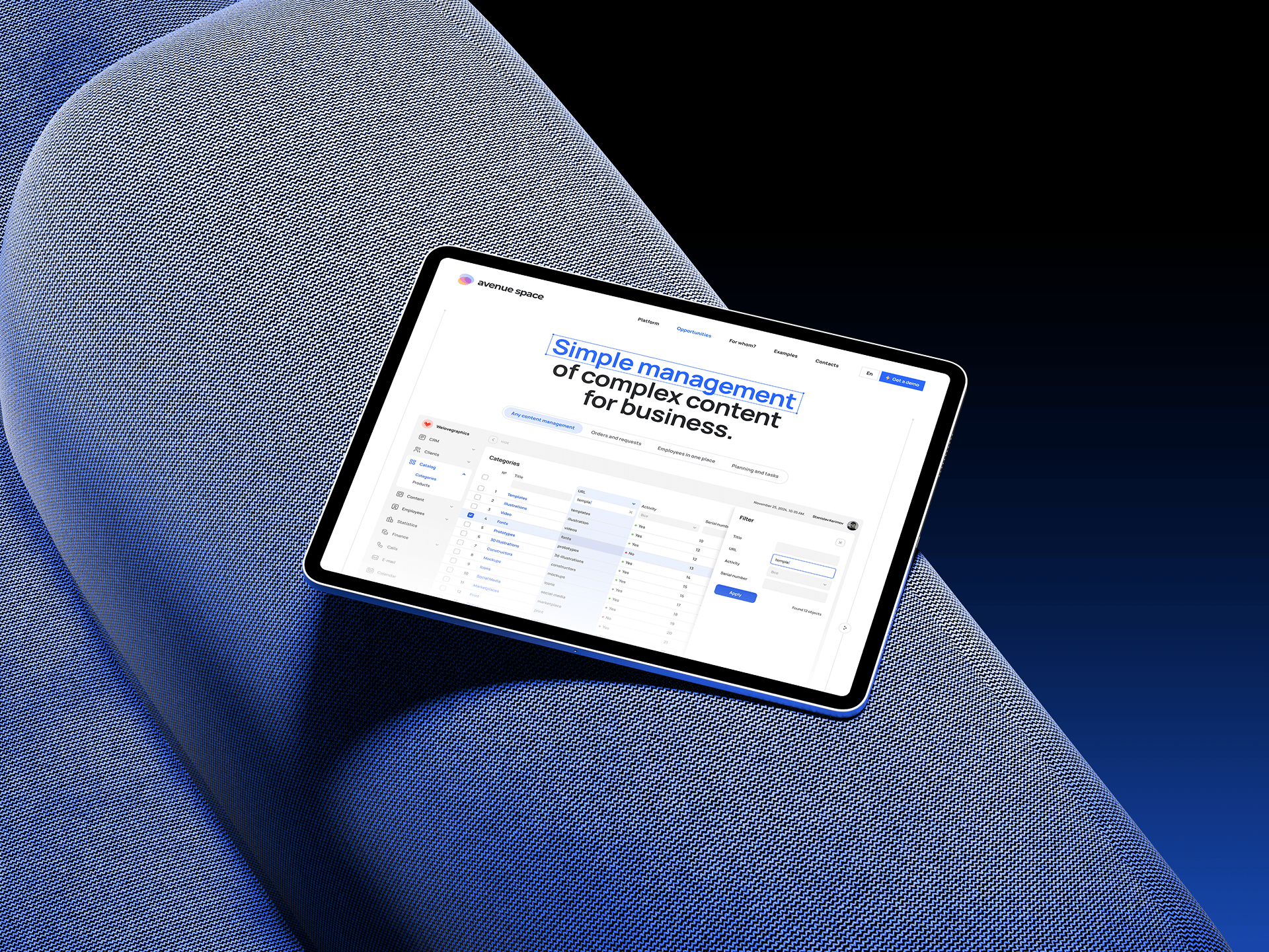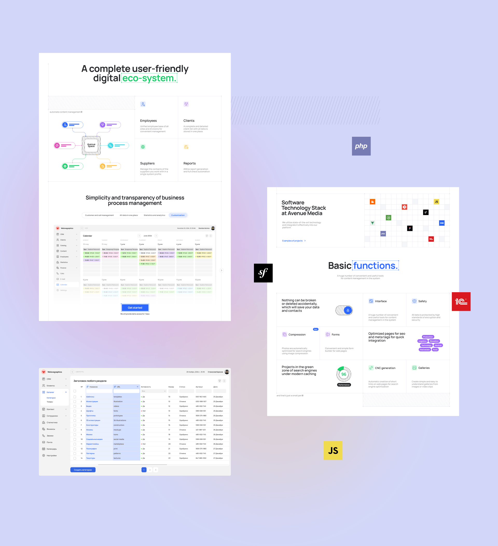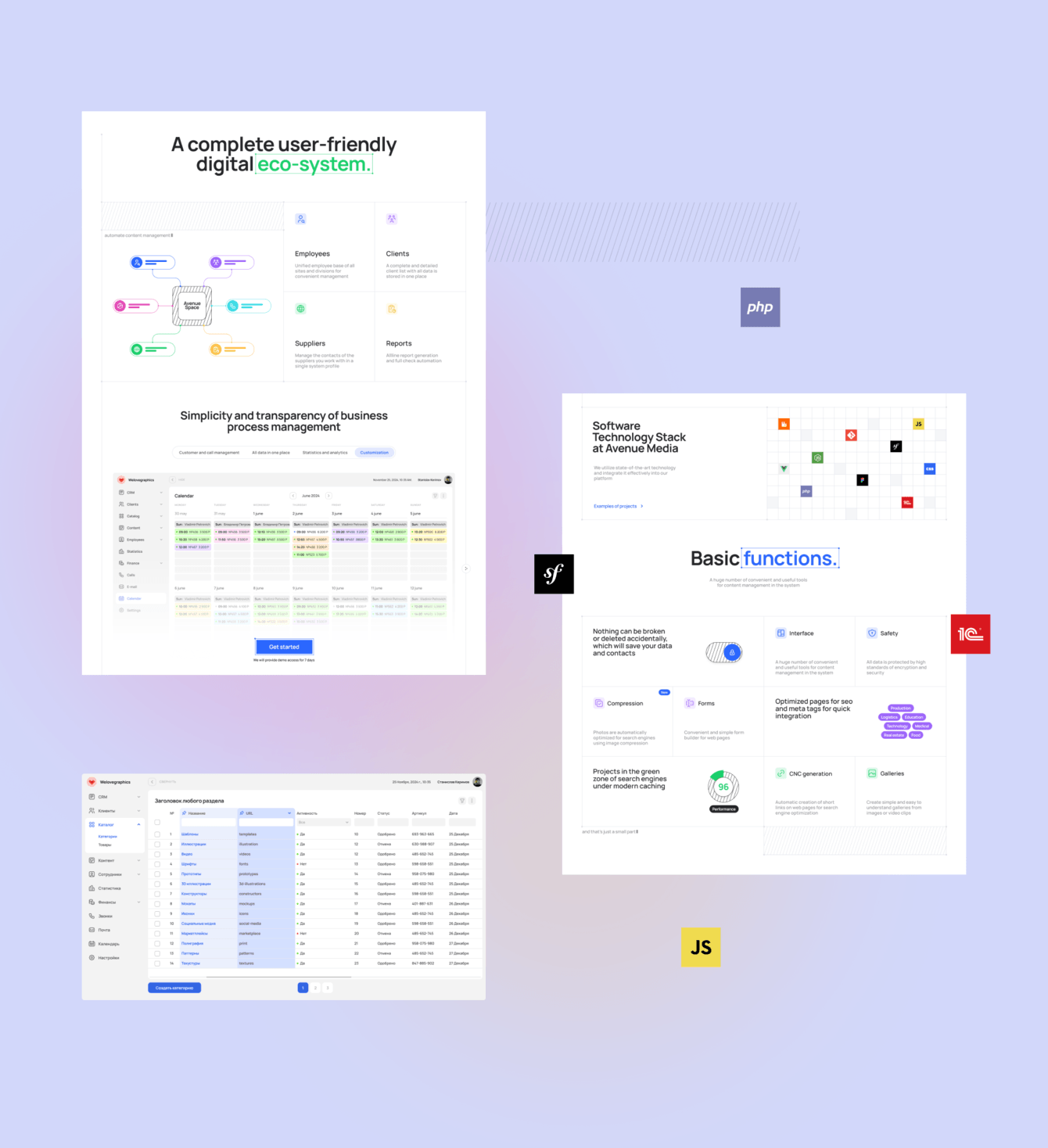 Разработать продуктовый сайт цифровой платформы управления бизнесом, которая включает в себя CRM, CMS, ERP, ERM, PIN и другие системы управления данными.