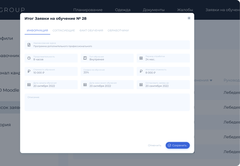 1. Разработан UI\UX интерфейсов проведения и прохождения обучения сотрудников.