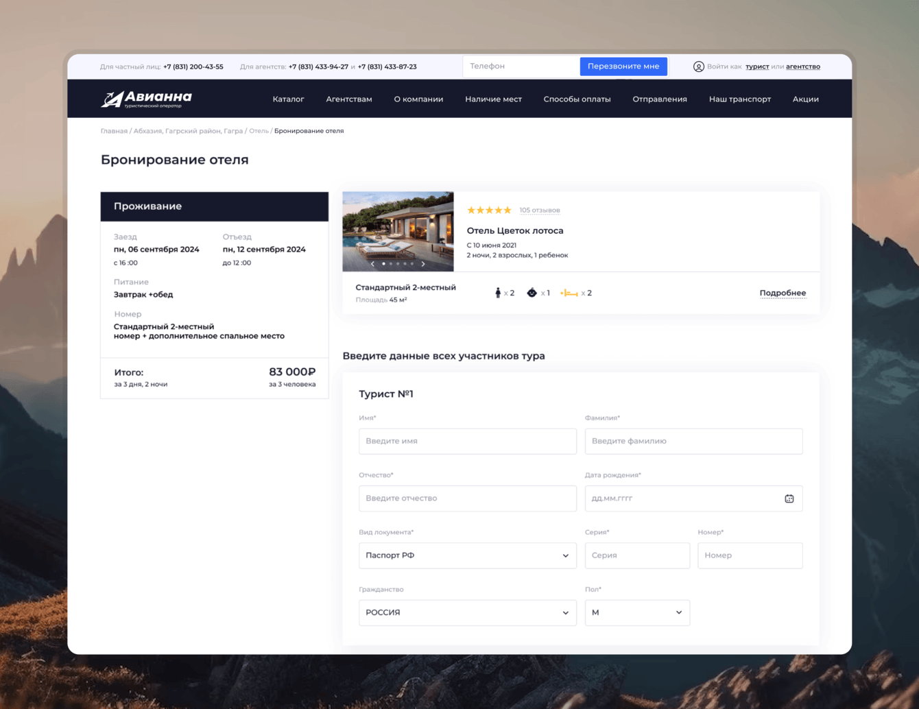 Мы обратились в PLENEXY ещё в 2020 году. Сайт — рабочий инструмент для увеличения прибыли, поэтому он должен был не просто соответствовать уровню нашего туристического агентства, но и отвечать ряду функциональных требований.