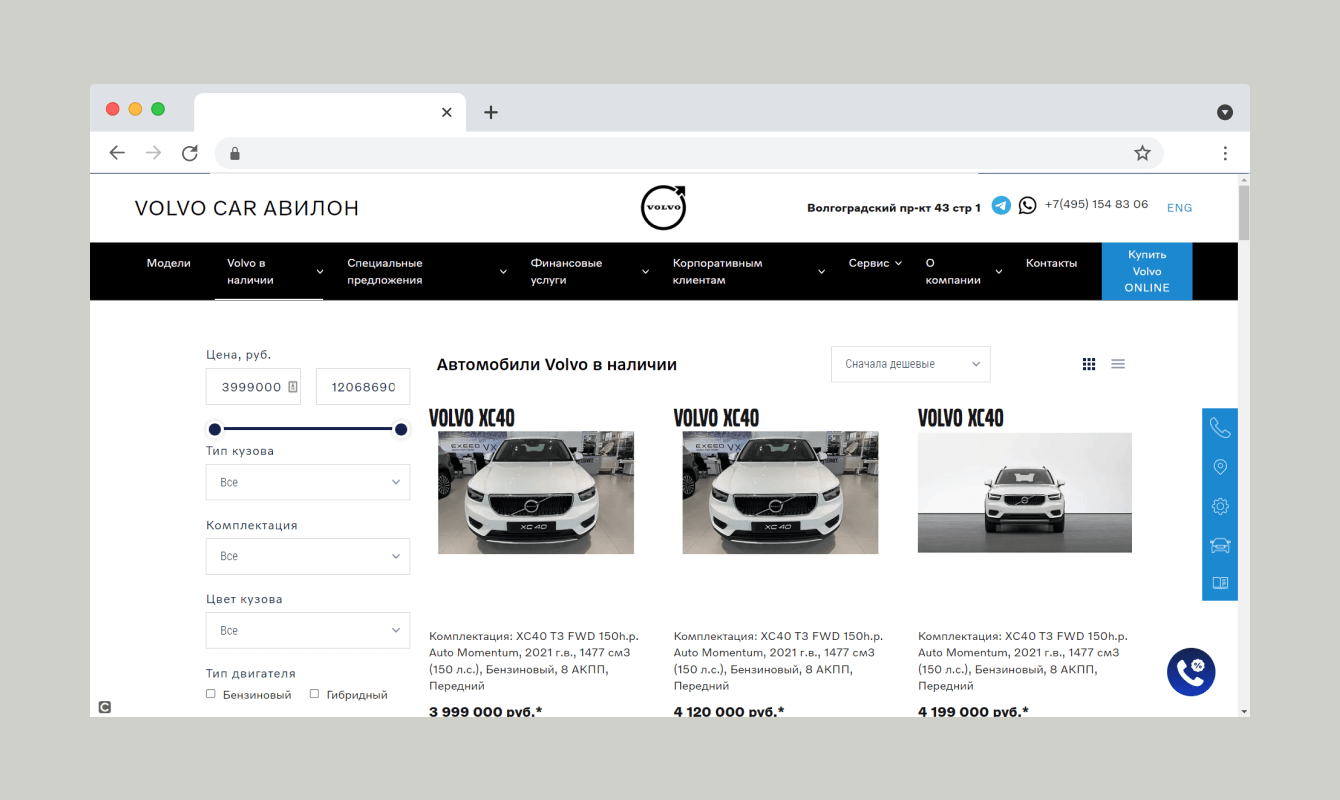 Сайт для Volvo создавался в очень сжатые для такого проекта сроки. Сайт создавали к дате официального открытия салона. Все удалось сделать качественно и в срок благодаря корректной и быстрой обратной связи от маркетолога компании, руководства. На этом проекте было ясно, что мы с Заказчиком одна команда. Мы сделали практически итоговую версию к дню открытия, а затем уже только убирали «шероховатости» проекта. Мы справились благодаря совместной работе и оперативному согласованию всех страниц сайта.