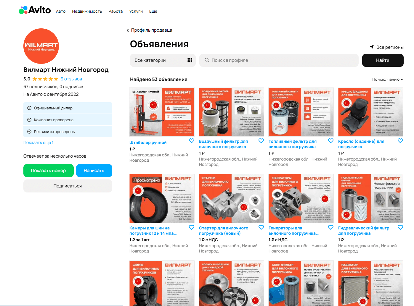Avito не только помогает увеличить реализацию запчастей и спецтехники, но сделать товарный знак узнаваемым для дилеров и покупателей.
