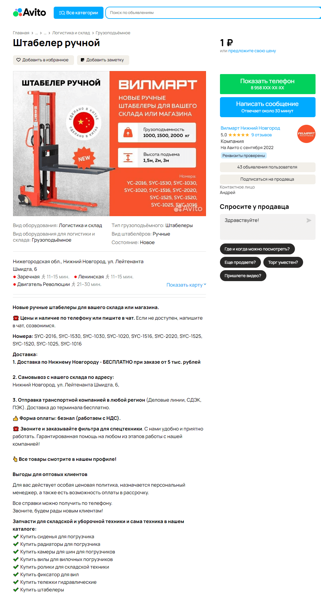 Возникло сомнение, насколько выгодна площадка Авито для оптовых продаж в нише B2B. Компания реализует большие объемы продукции дилерам. Эксперты учли преимущества Avito — понятный кабинет продавца, продвижение компании не требует больших вложений.