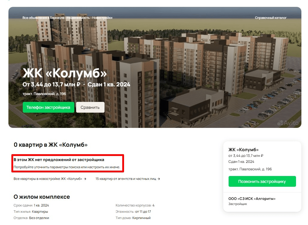 Либо же застройщик не продвигается на Авито совсем, а все сливки забирают риэлторы: