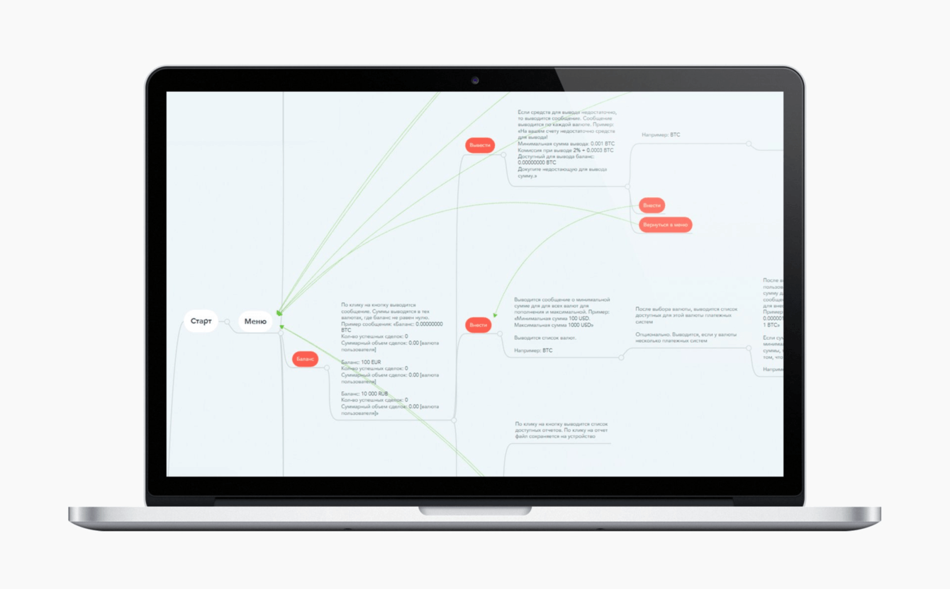 Все сценарии были предварительно разработаны и описаны в карте ума. Мы детально продумали действия пользователя для комфортного взаимодействия с ботом.