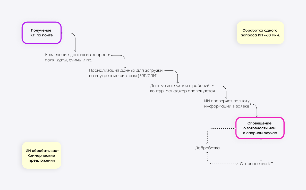 Чтобы радикально ускорить процесс подготовки коммерческих предложений и справиться с хаосом входящих заявок, мы в Технологике выбрали путь разработки кастомного интеллектуального модуля, способного работать с любыми форматами документов, учиться на истории закупок и интегрироваться с инфраструктурой клиента.