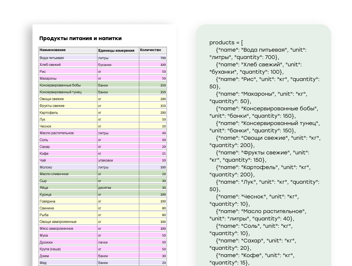 Таким образом, мы получаем машиночитаемый список из позиций в формате JSON, который можно дальше сличать с базами данных по поставщикам.